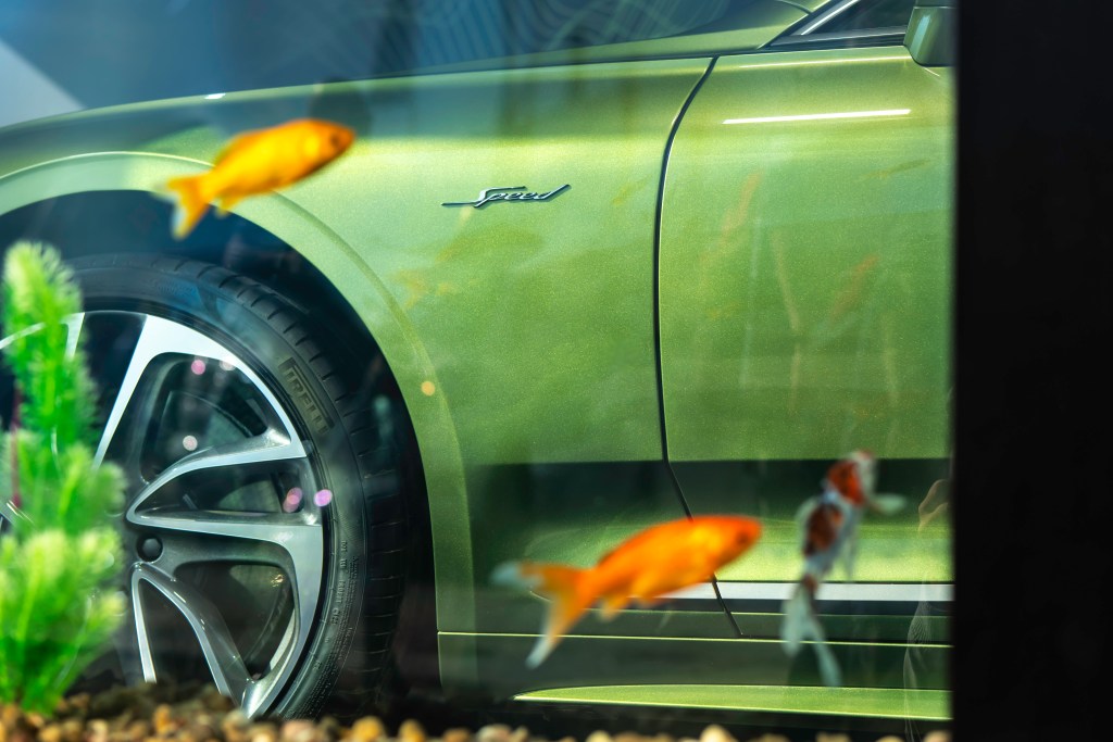 The ‘FOShtank’ is a bespoke version of the glass ‘Toy Box’ display units that Bentley utilizes across it’s Dream Factory campus in Crewe, England, but modified to include a custom-built fish tank in a tongue-in-cheek take on the underwater theme.
