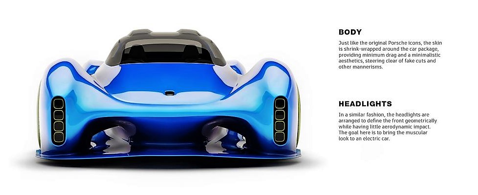 The presence of DNA from the German’s marque’s most iconic model isn’t necessarily obvious—a case could be made that the body, with its sleek bubbly roof and prominent wheel arches, looks more like a futuristic Taycan. But the duo claims that there are 50s/60s-era cues design as well, such as headlights that are aligned with the front wheels and smoothly wrapped bodywork.