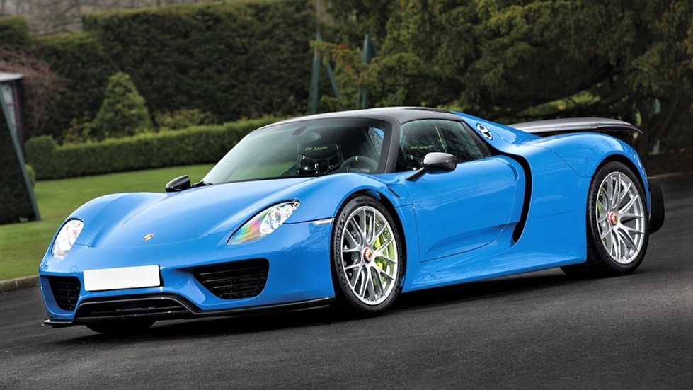 Arrow Blue Porsche 918 Spyder as it appeared in a GT Spirit notice about this 2015 Weissach package enhanced single ownership