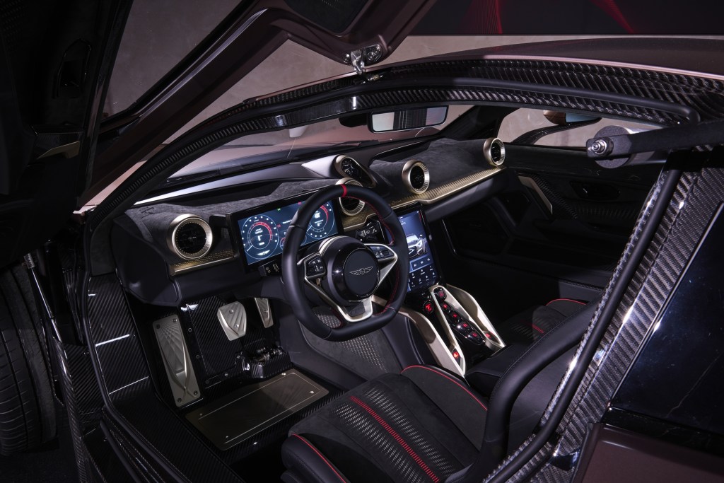 The Sagrera also features an advanced braking system. Single-block brake calipers provide superior rigidity and improved braking feel, while reducing weight by 500 grams. The car is equipped with 400mm carbon-ceramic discs on both axles, capable of withstanding the intense braking demands of racetrack conditions and extended runs without fatigue. Enhanced cooling improves the system’s performance, allowing it to operate at temperatures up to 1,000 degrees Celsius.
