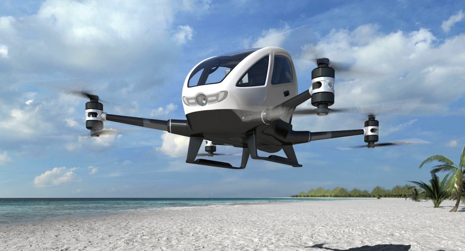 EHang claims its new vehicle, dubbed the 184, is the world’s first electric, personal autonomous aerial vehicle (AAV) that will “achieve humanity’s long-standing dream of easy, everyday flight” for short-to-medium distances. Image Credit: CGStudio